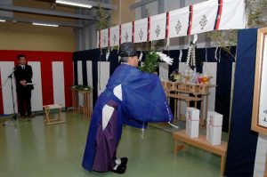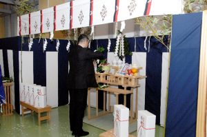 The completion ceremony was attended by many guests including Dr. Toshihiko Makino, Vice-President and Dr. Shigeo Sugiyama, Standing Director from the Japan Dental Association, Mr. Shigeo Nakayama Chairman of the Japan Dental Pharmaceutical Association, and Mr. Hikaru Ouchi, President of AYUMI Pharmaceutical Corporation. The guests also joined the Shinto ritual ceremony “Tamagushi-hoten”.