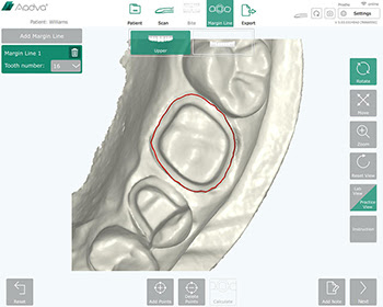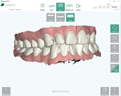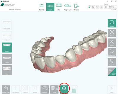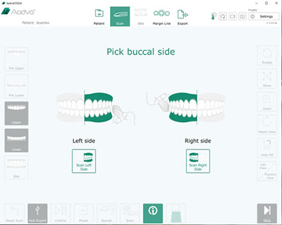 The scan software facilitates a smooth intraoral scanning with features such as position colour tracking, easy pick-up and showing a small live-scanning window in the monitor while scanning. A start-stop button placed on the handpiece offers a better control over the scanning procedure.